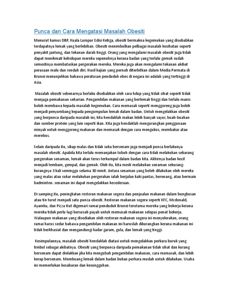 Contoh Karangan Punca Obesiti Pdf
